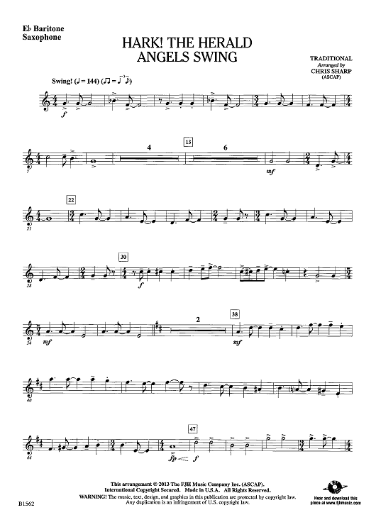 Digital Sheet Music for Hark! The Herald Angels Swing - Eb Baritone Sax by Traditional, Chris Sharp scored for Concert Band; id:440365