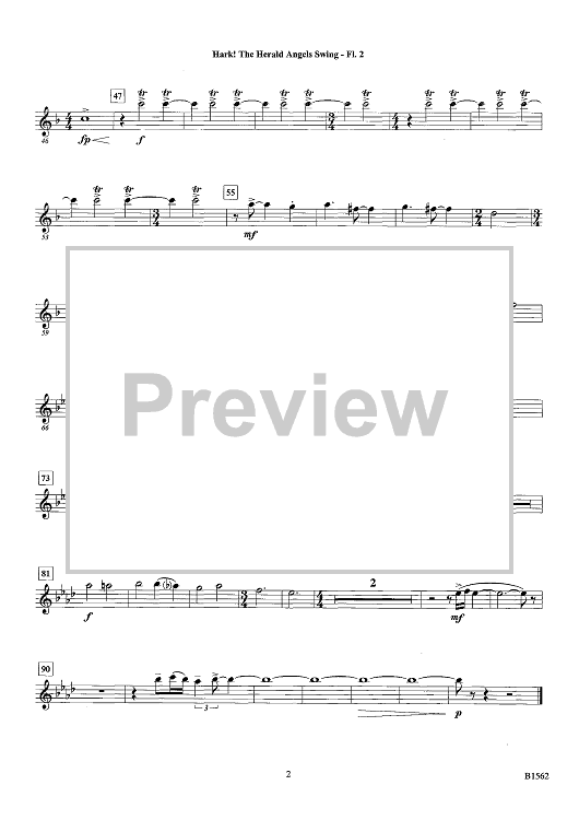 "Hark! The Herald Angels Swing - Flute 2" Sheet Music by Traditional