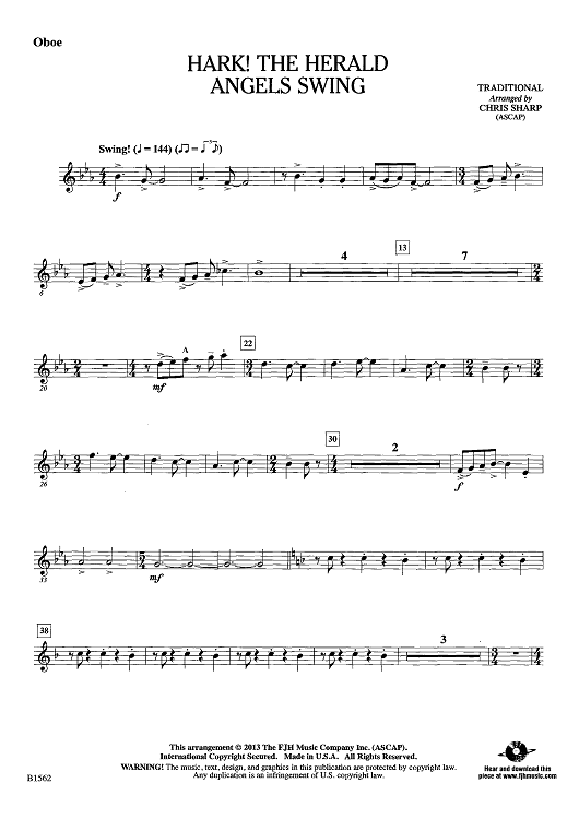 Digital Sheet Music for Hark! The Herald Angels Swing - Oboe by Traditional, Chris Sharp scored for Concert Band; id:440356