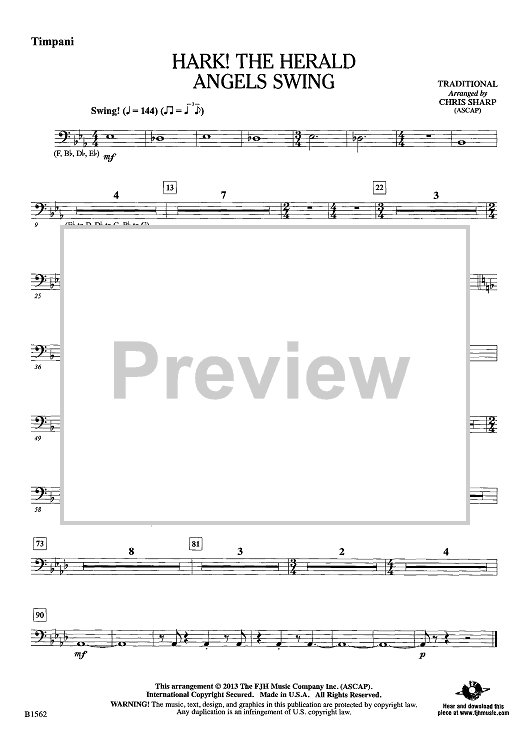 Digital Sheet Music for Hark! The Herald Angels Swing - Timpani by Traditional, Chris Sharp scored for Concert Band; id:440380