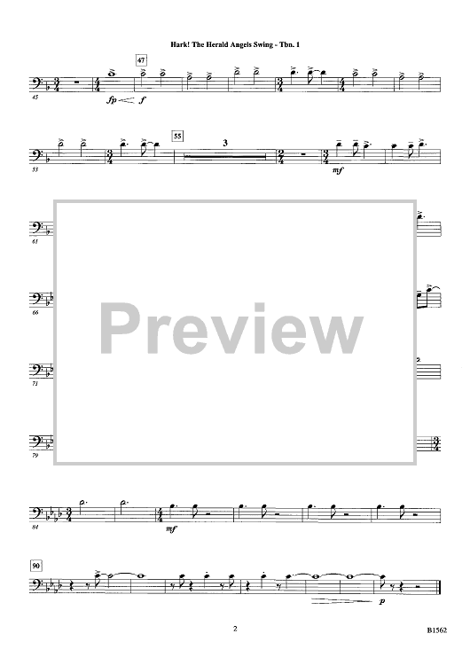"Hark! The Herald Angels Swing - Trombone 1" Sheet Music by Traditional