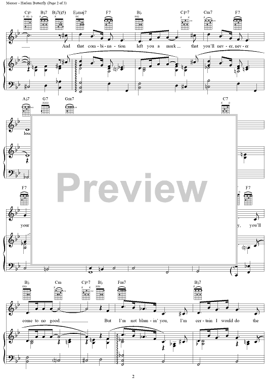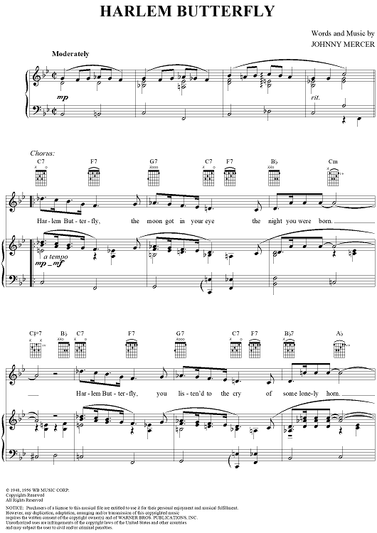 Digital Sheet Music for Harlem Butterfly by Johnny Mercer scored for Piano/Vocal/Chords; id:251779
