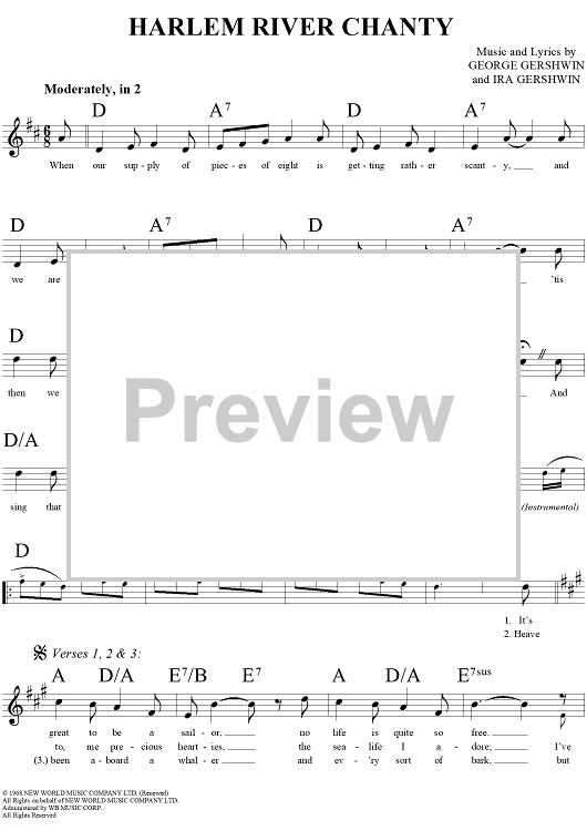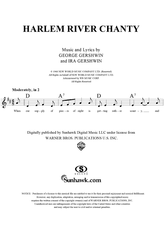 Digital Sheet Music for Harlem River Chanty by , George Gershwin, Ira Gershwin scored for Lead Sheet; id:283618