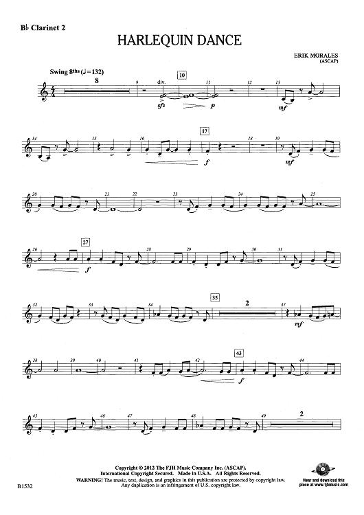 Digital Sheet Music for Harlequin Dance - Bb Clarinet 2 by Erik Morales scored for Concert Band; id:442457