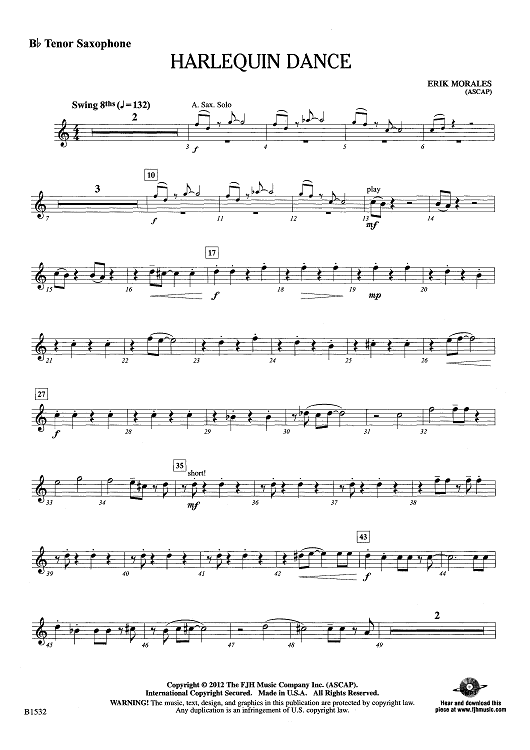 "Harlequin Dance - Bb Tenor Sax" Sheet Music by Erik Morales
