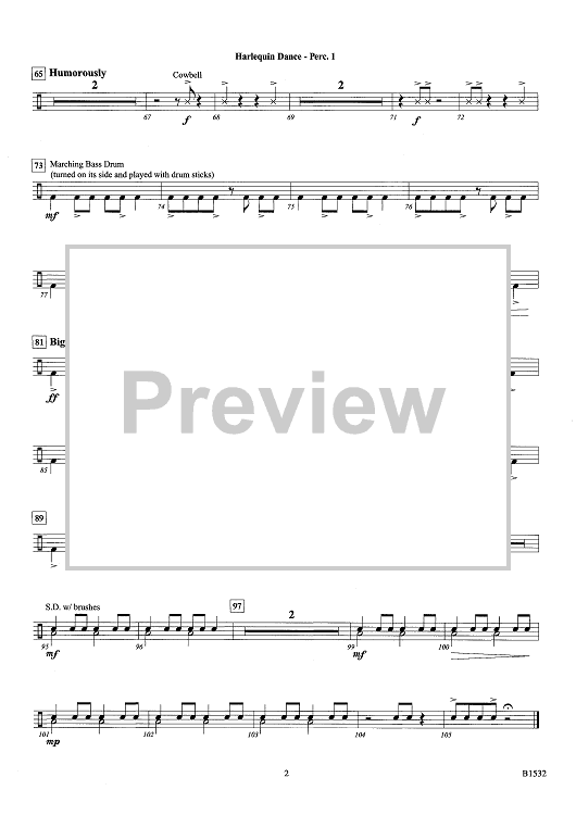 Digital Sheet Music for Harlequin Dance - Percussion 1 by Erik Morales scored for Concert Band; id:442474
