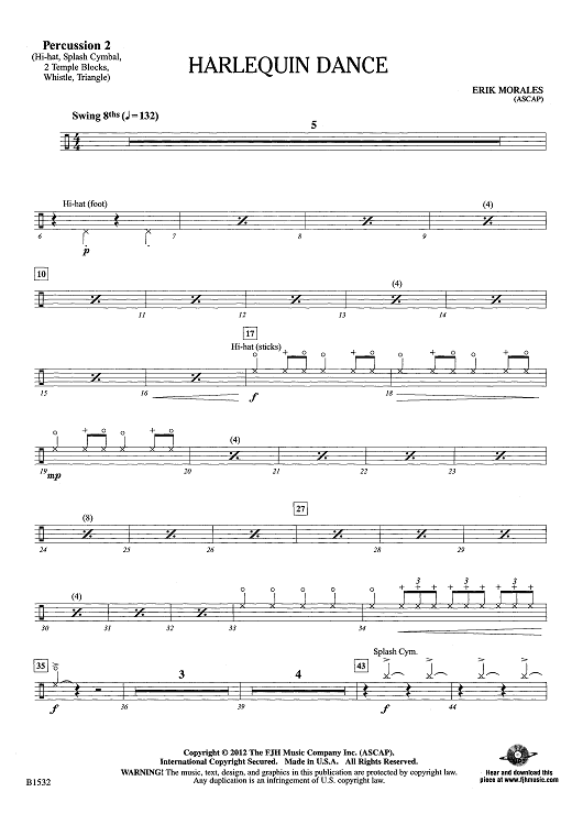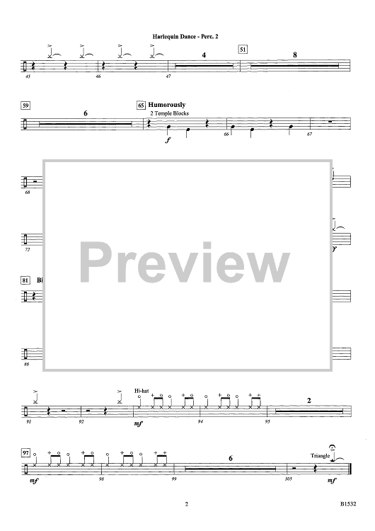 Digital Sheet Music for Harlequin Dance - Percussion 2 by Erik Morales scored for Concert Band; id:442475