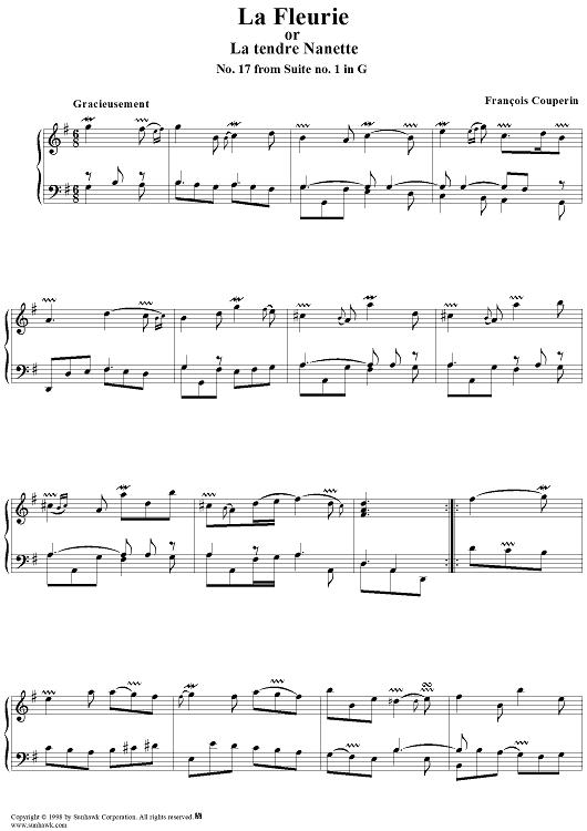 Digital Sheet Music for Harpsichord Pieces, Book 1, Suite 1, No. 17: La Fleurie, or La tendre Nanette by Francois Couperin scored for Piano Solo; id:113445