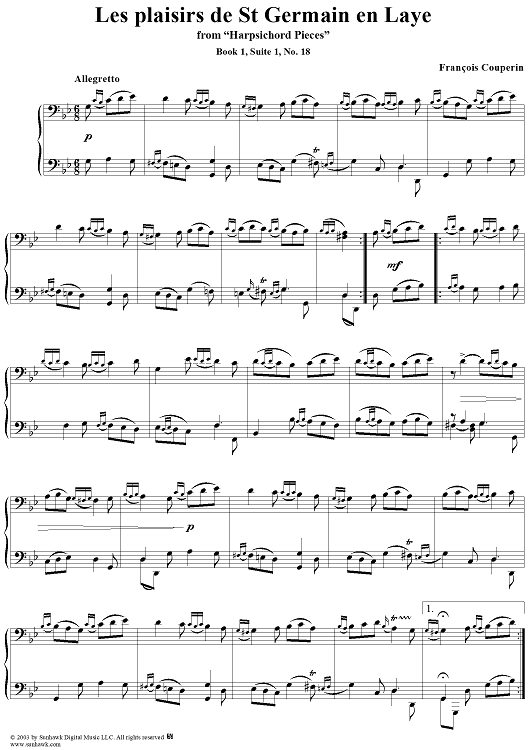 "Harpsichord Pieces, Book 1, Suite 1, No. 18: Les Plaisirs de Saint-Germain-en-Laye" Sheet Music by Francois Couperin