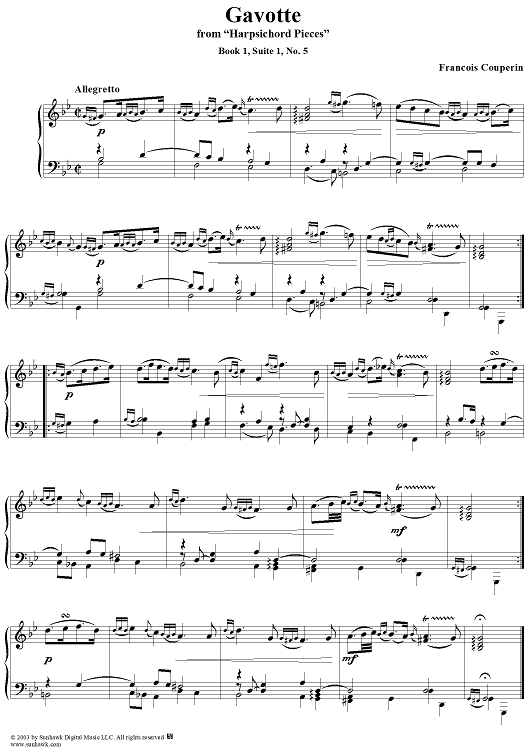 Digital Sheet Music for Harpsichord Pieces, Book 1, Suite 1, No. 5: Gavotte by Francois Couperin scored for Piano Solo; id:294284