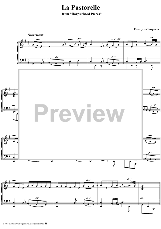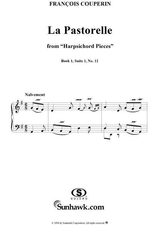 Digital Sheet Music for Harpsichord Pieces, Book 1, Suite 1, No.12: La Pastorelle by Francois Couperin scored for Piano Solo; id:271948