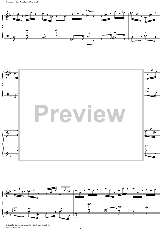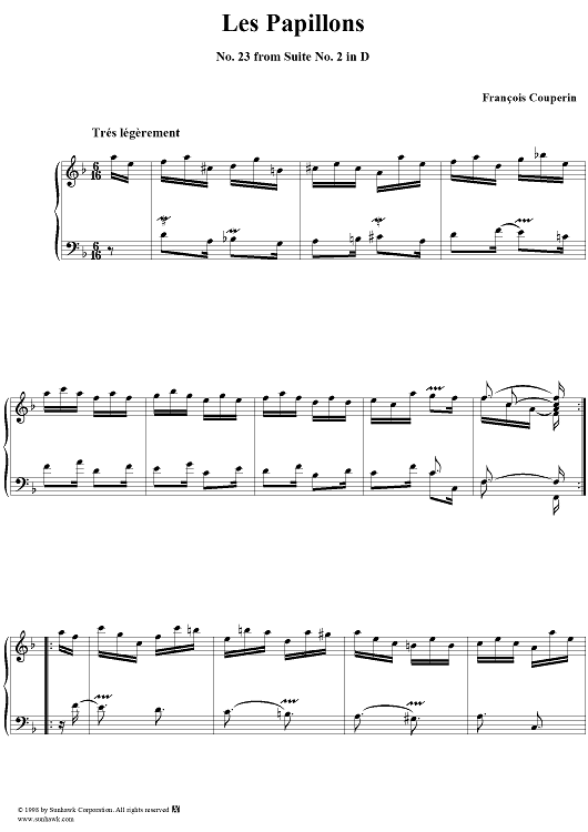 "Harpsichord Pieces, Book 1, Suite 2, No. 23: Les Papillons" Sheet Music by Francois Couperin
