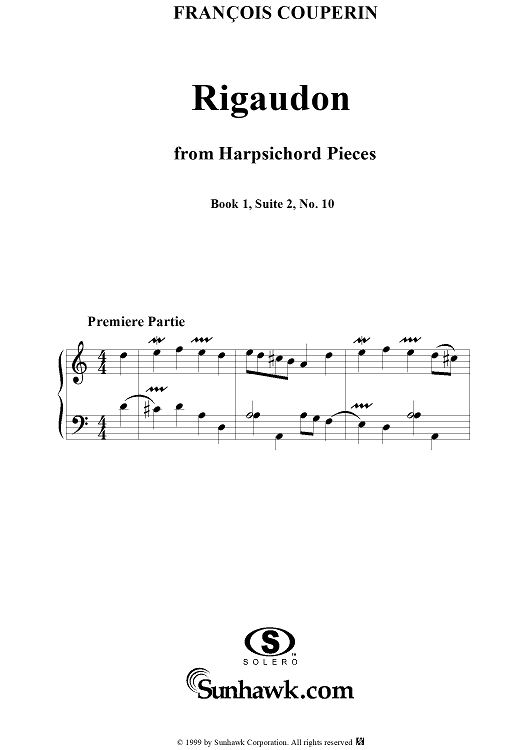 Digital Sheet Music for Harpsichord Pieces, Book 1, Suite 2, No.10: Rigaudon Premiere and Seconde Partie by Francois Couperin scored for Piano Solo; id:271975