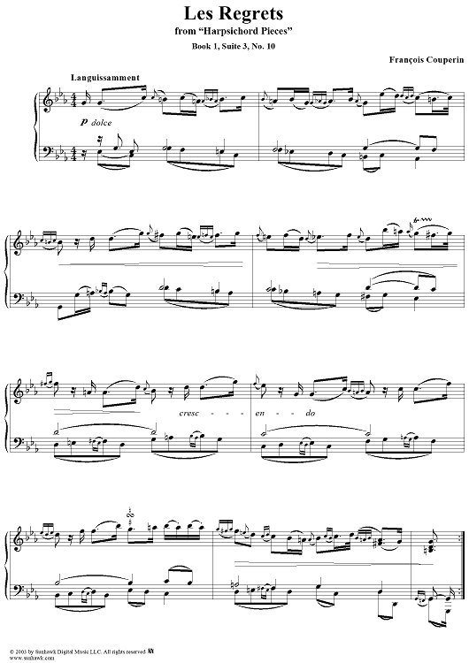 "Harpsichord Pieces, Book 1, Suite 3, No. 10: Les Regrets" Sheet Music by Francois Couperin