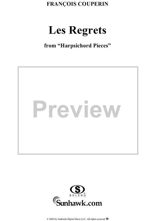 Digital Sheet Music for Harpsichord Pieces, Book 1, Suite 3, No. 10: Les Regrets by Francois Couperin scored for Piano Solo; id:294680