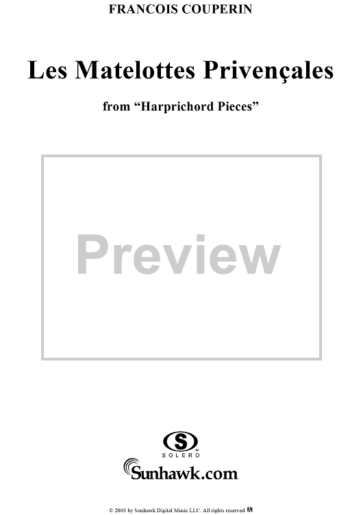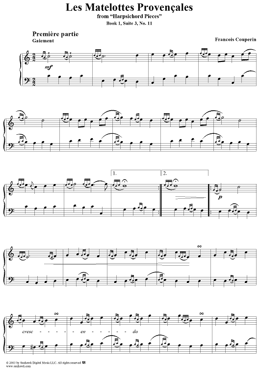 "Harpsichord Pieces, Book 1, Suite 3, No. 11: Les Matelottes Provencales" Sheet Music by Francois Couperin