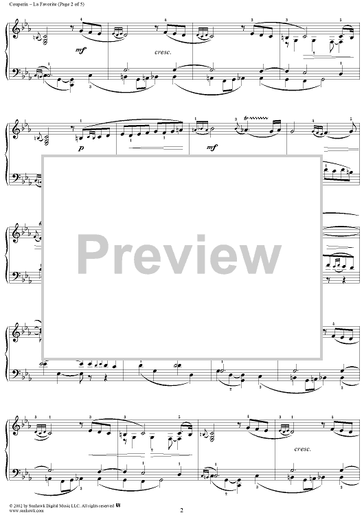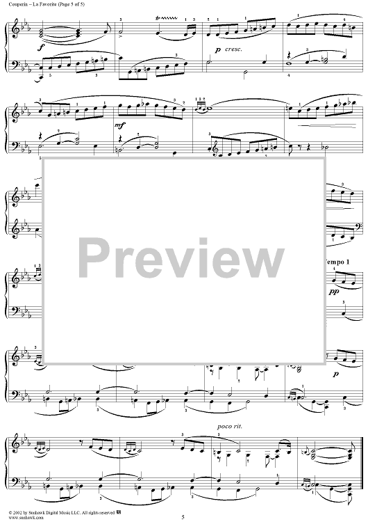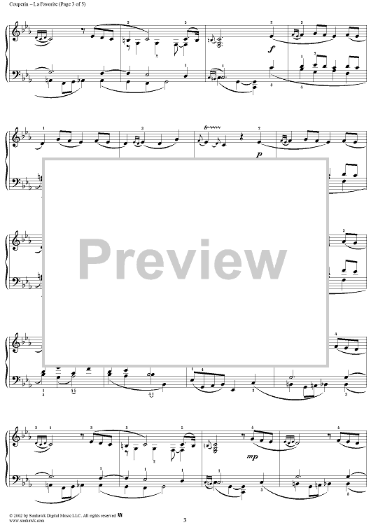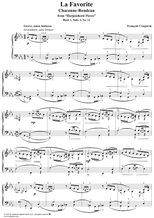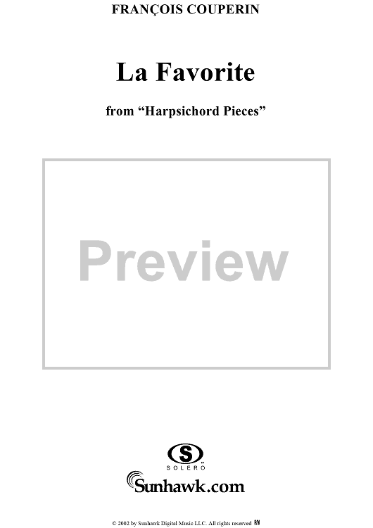 Digital Sheet Music for Harpsichord Pieces, Book 1, Suite 3, No. 12: La Favorite by Francois Couperin scored for Piano Solo; id:262328