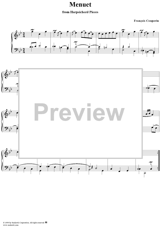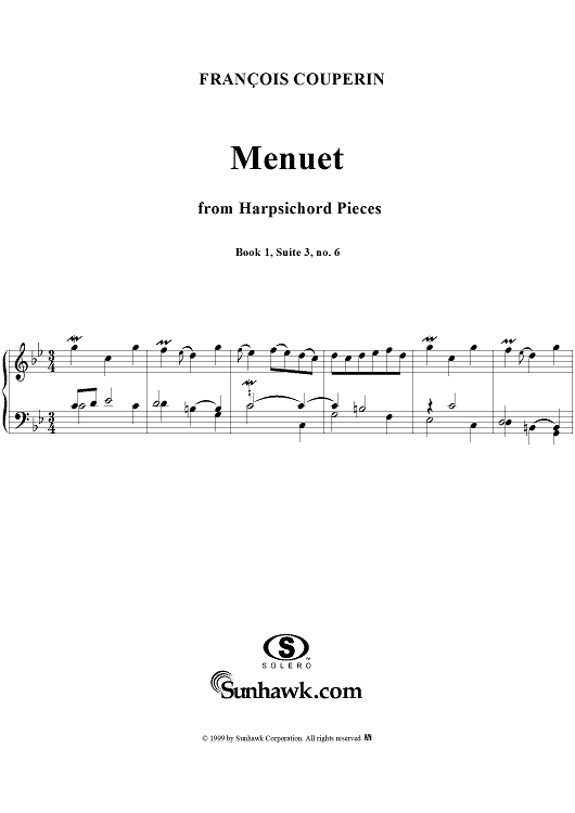 "Harpsichord Pieces, Book 1, Suite 3, No.6: Menuet" Sheet Music by Francois Couperin