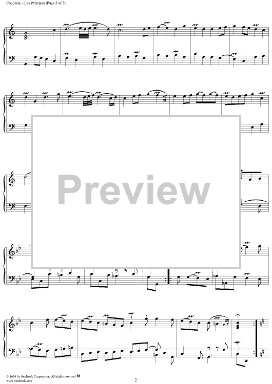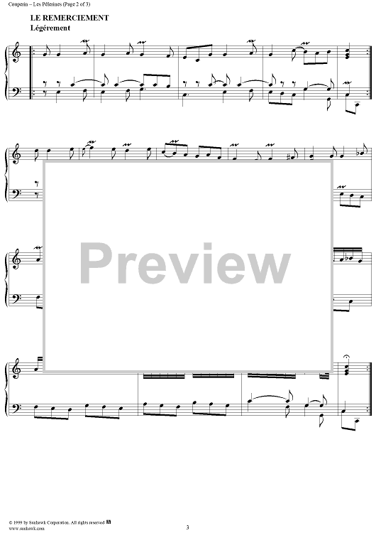 Digital Sheet Music for Harpsichord Pieces, Book 1, Suite 3, No.7: Les Pélerines 1. La Marche, 2. La Caristade, 3. Le Remerciement. by Francois Couperin scored for Piano Solo; id:272291