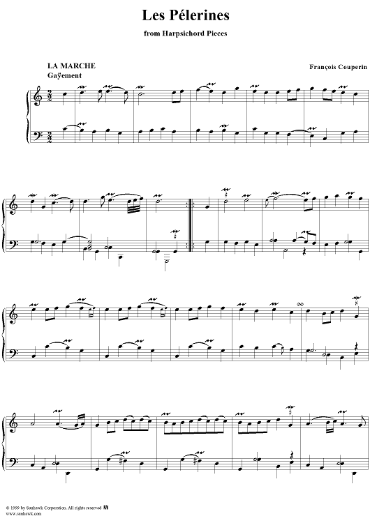 "Harpsichord Pieces, Book 1, Suite 3, No.7: Les Pélerines 1. La Marche, 2. La Caristade, 3. Le Remerciement." Sheet Music by Francois Couperin