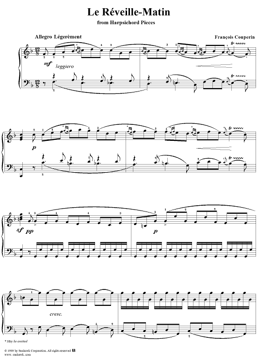 Digital Sheet Music for Harpsichord Pieces, Book 1, Suite 4, No. 4: Le Réveille-Matin by Francois Couperin scored for Piano Solo; id:262540