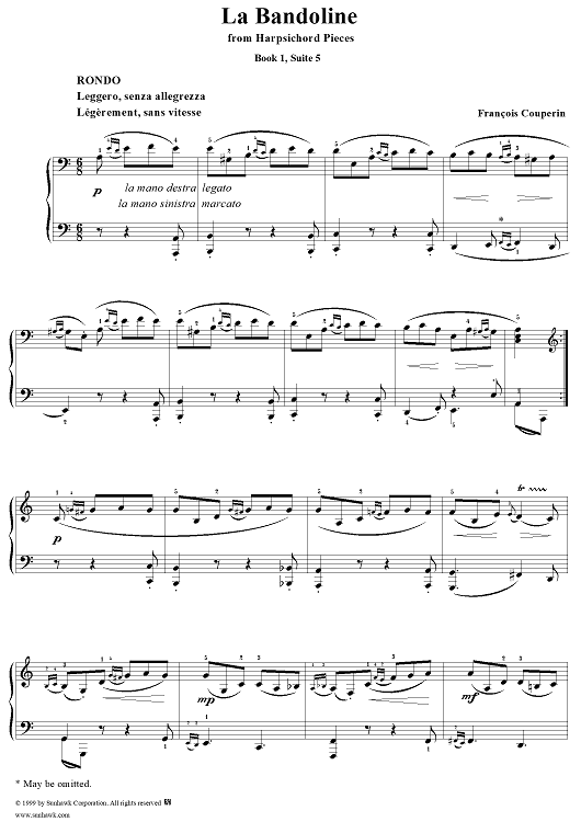 "Harpsichord Pieces, Book 1, Suite 5, No. 8: La Bandoline" Sheet Music by Francois Couperin