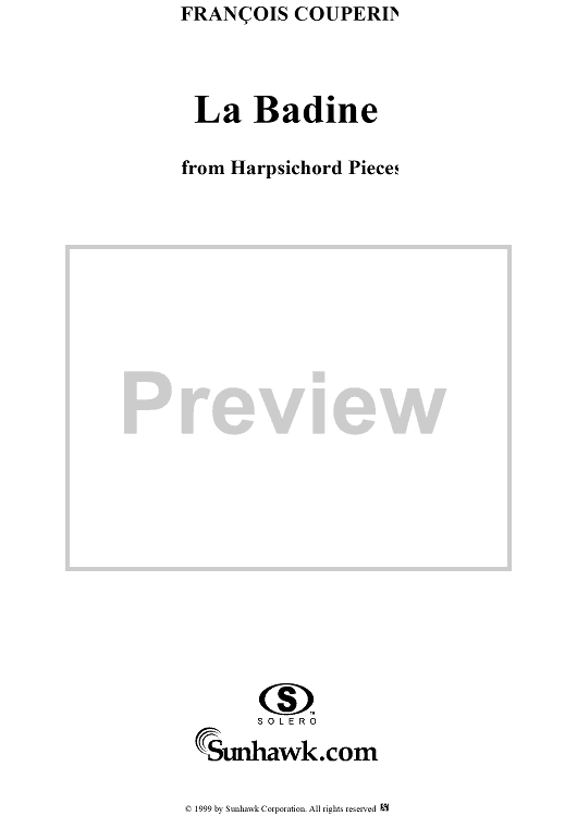 Digital Sheet Music for Harpsichord Pieces, Book 1, Suite 5, No.7: La Badine by Francois Couperin scored for Piano Solo; id:272303