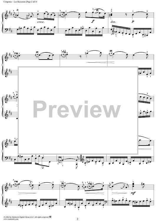 Digital Sheet Music for Harpsichord Pieces, Book 3, Suite 13, No. 2: Les Rozeux by Francois Couperin scored for Piano Solo; id:270567