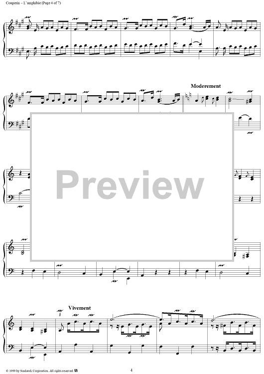 Digital Sheet Music for Harpsichord Pieces, Book 4, Suite 24, No.8: L'amphibie , mouvement de passacaille by Francois Couperin scored for Piano Solo; id:272272