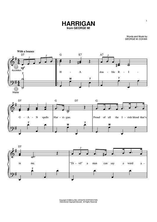 Digital Sheet Music for Harrigan by George M Cohan scored for Accordion; id:391104