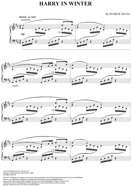 Digital Sheet Music for Harry in Winter by Patrick Doyle scored for Piano Solo; id:315245