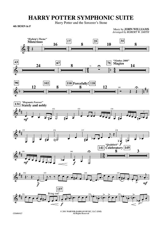 Digital Sheet Music for Harry Potter Symphonic Suite - Horn in F 4 by John Williams, Robert W. Smith scored for Concert Band; id:320021