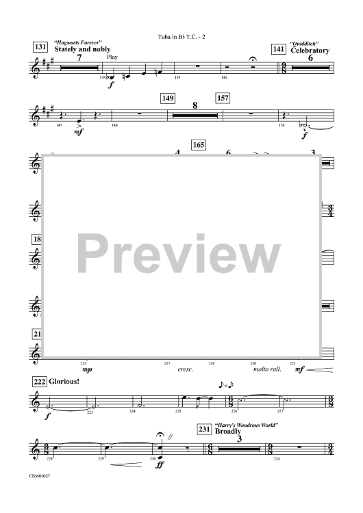 "Harry Potter Symphonic Suite - Tuba in B-flat TC" Sheet Music by John Williams