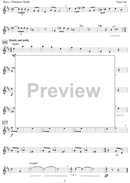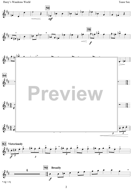 Digital Sheet Music for Harry's Wondrous World by John Williams scored for Tenor Sax/Piano; id:317318