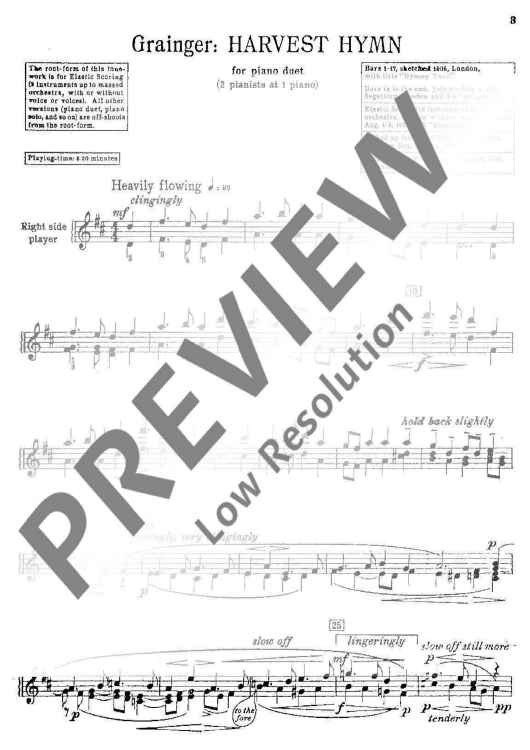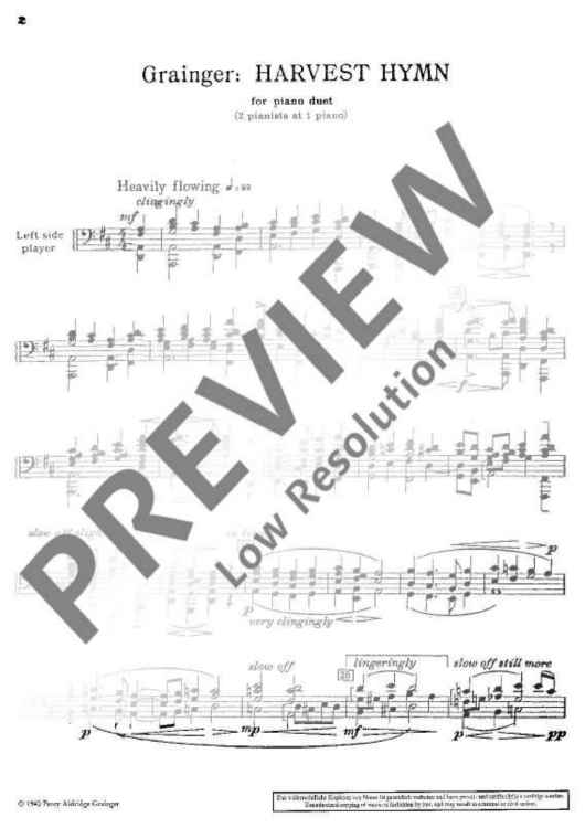 Digital Sheet Music for Harvest Hymn by George Percy Aldridge Grainger scored for Piano (4 Hands); id:477143