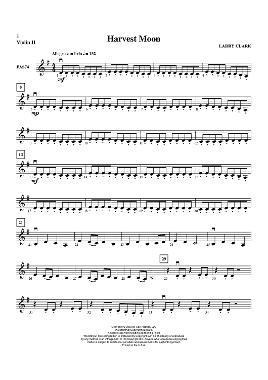 "Harvest Moon - Violin 2" Sheet Music by Larry Clark