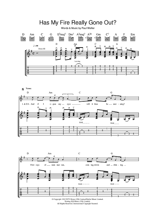 Digital Sheet Music for Has My Fire Really Gone Out? by Paul Weller scored for Guitar Tab; id:396349