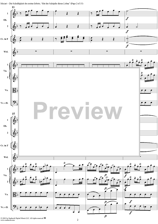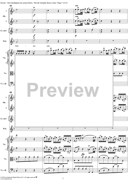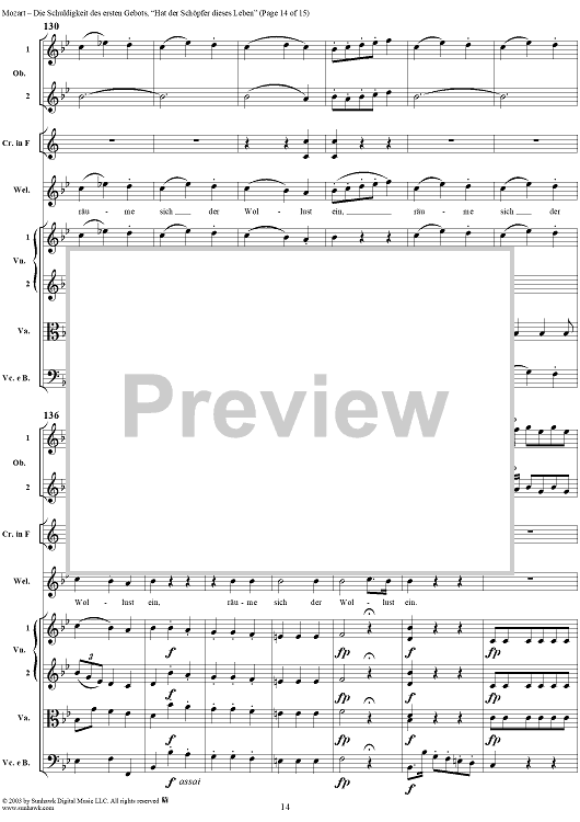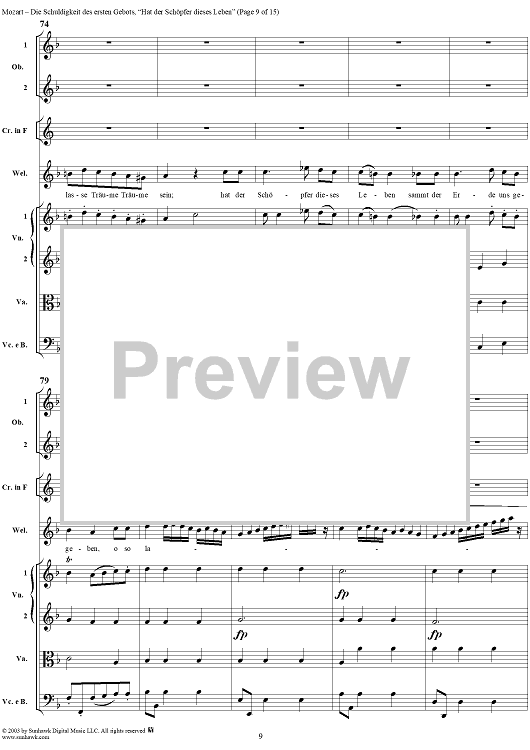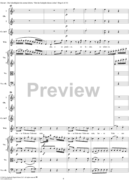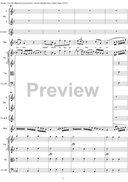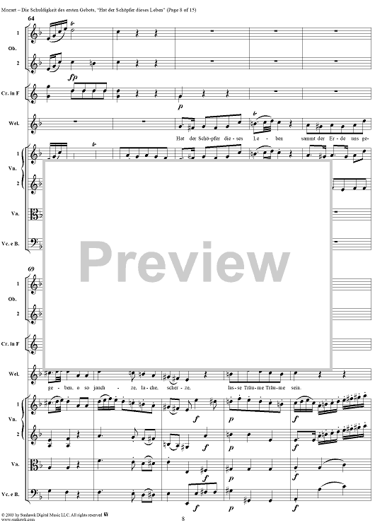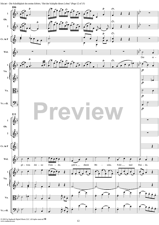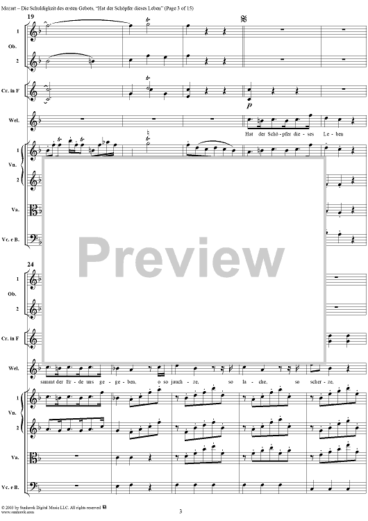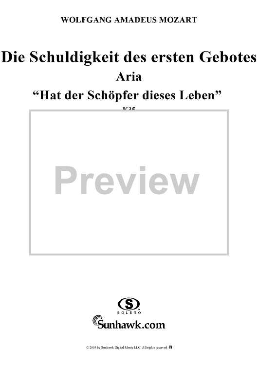 Digital Sheet Music for "Hat der Schöpfer dieses Leben", No. 4 from "Die Schuldigkeit des ersten Gebotes", K35 - Full Score by Wolfgang Amadeus Mozart scored for Voice and Orchestra; id:291705