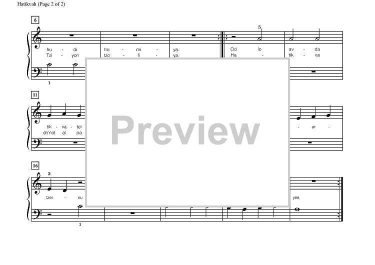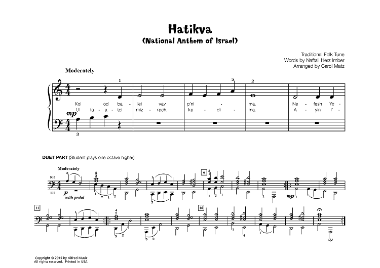 "Hatikvah (National Anthem of Israel)" Sheet Music by Traditional Folk Song