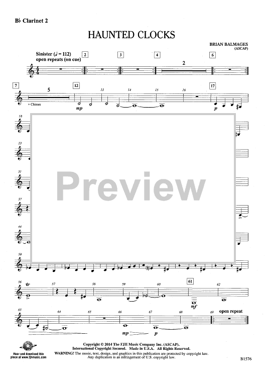 "Haunted Clocks - Bb Clarinet 2" Sheet Music by Brian Balmages