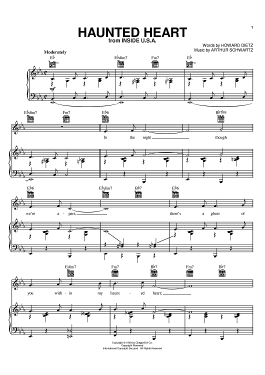 Digital Sheet Music for Haunted Heart by Frank Sinatra, Howard Dietz, Jo Stafford, Arthur Schwartz scored for Piano/Vocal/Chords; id:373598