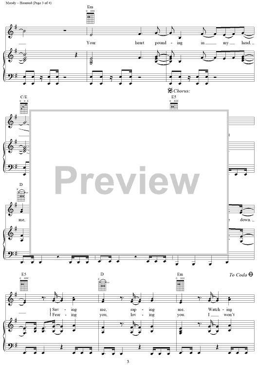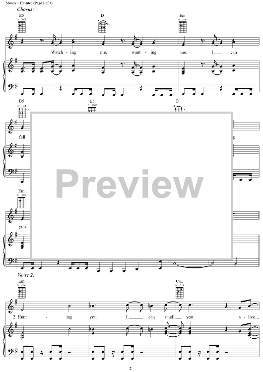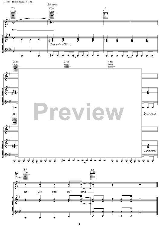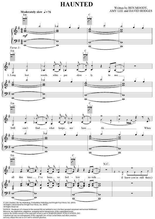 Digital Sheet Music for Haunted by Evanescence, Ben Moody, Amy Lee, David Hodges scored for Piano/Vocal/Chords; id:304555