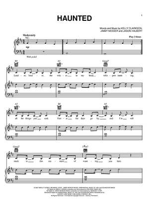 Digital Sheet Music for Haunted by Jason Halbert, Jimmy Messer, Kelly Clarkson scored for Piano/Vocal/Chords; id:402793