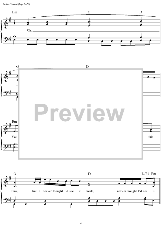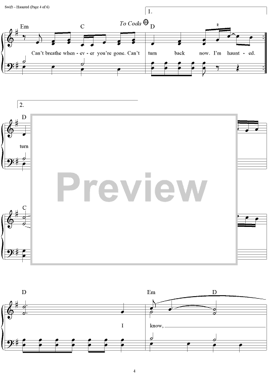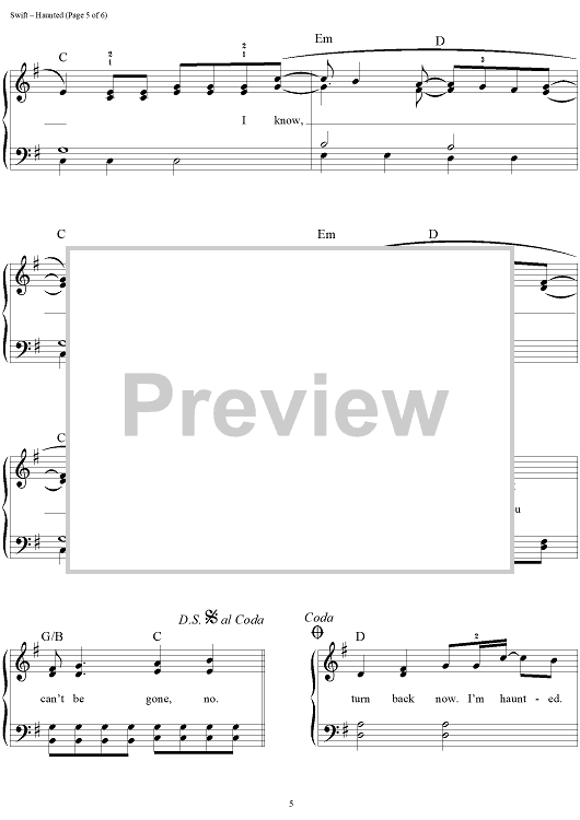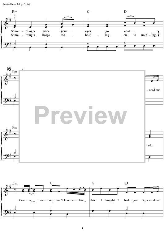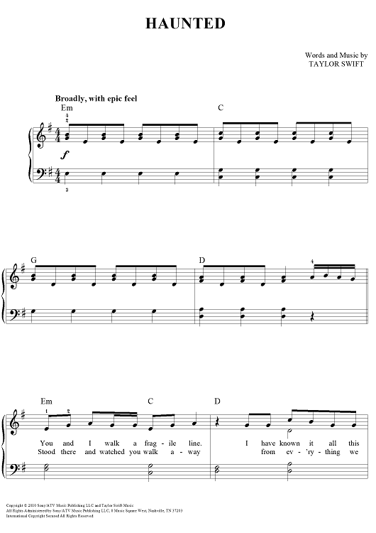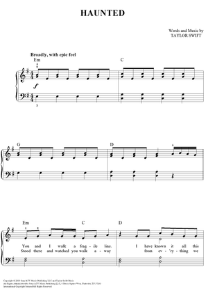 Digital Sheet Music for Haunted by Taylor Swift scored for Easy Piano/Vocal/Chords; id:460133