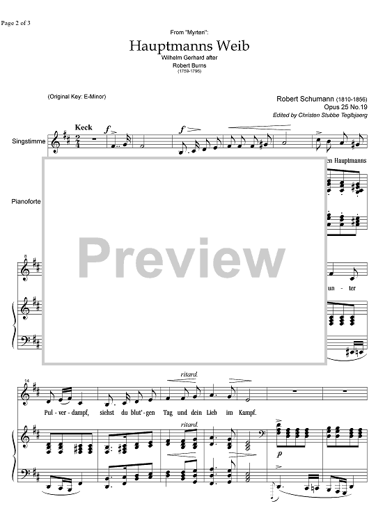 Digital Sheet Music for Hauptmanns Weib Op.25 No.19 by , Robert Schumann scored for Alto or Bass/Piano; id:332531