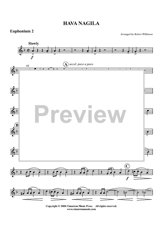 "Hava Nagila - Euphonium 2 BC/TC" Sheet Music by Traditional