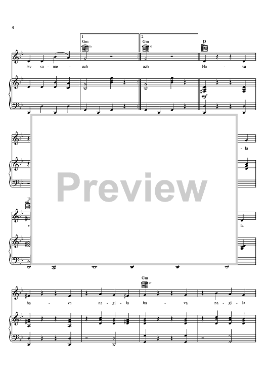Digital Sheet Music for Hava Nagila (Let's Be Happy) by Moshe Nathanson, Abraham Zvi Idelsohn scored for Piano/Vocal/Chords; id:380347