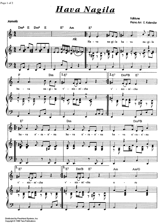 Digital Sheet Music for Hava Nagila by , Edward Kalendar, Traditional scored for Voice/Piano; id:343769