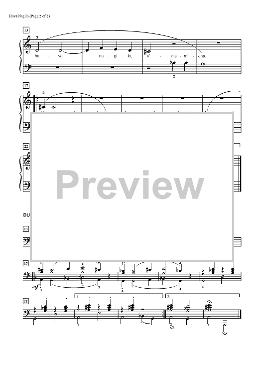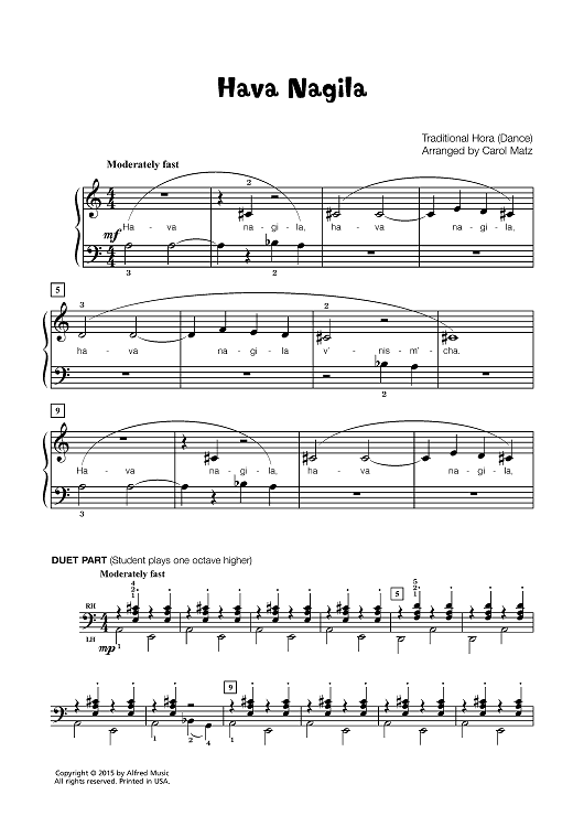 Digital Sheet Music for Hava Nagila by Carol Matz, Traditional Hora (Dance) scored for Piano; id:461268