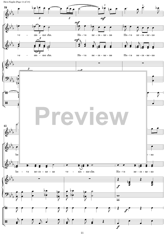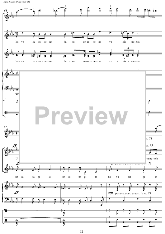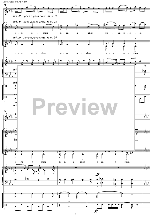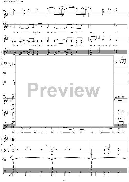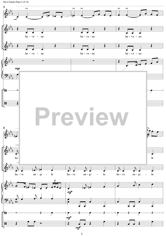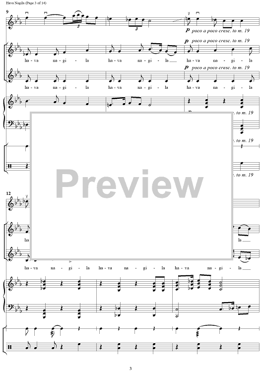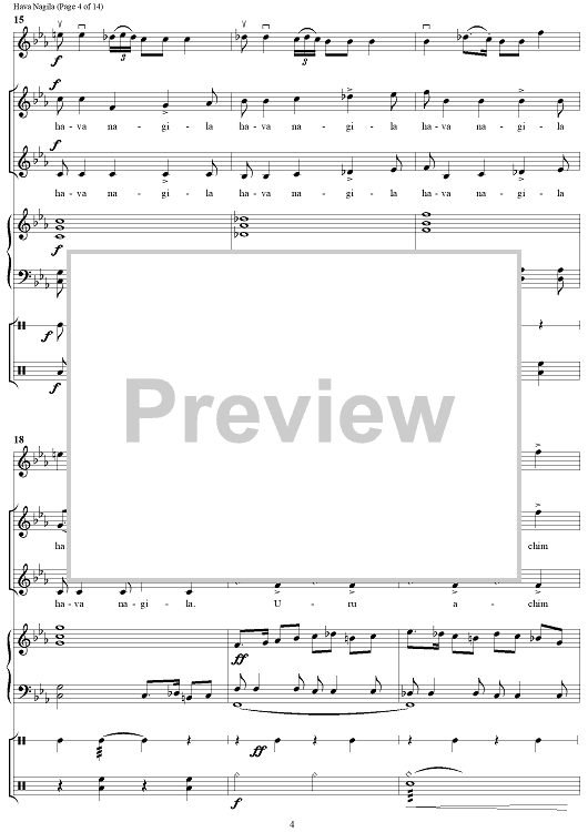 Digital Sheet Music for Hava Nagila - Vocal Score by Traditional Jewish, Valerie Shields, Ron Johnson scored for SSA Choir/Violin/Perc; id:510625
